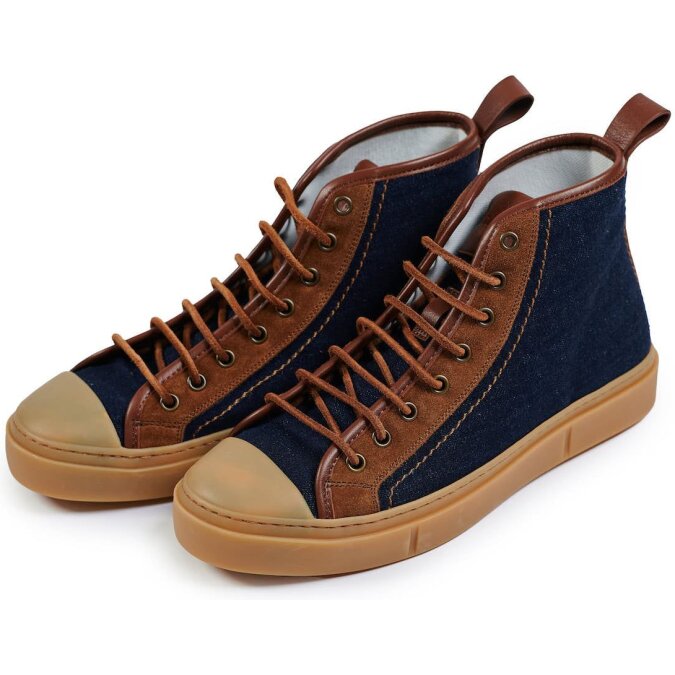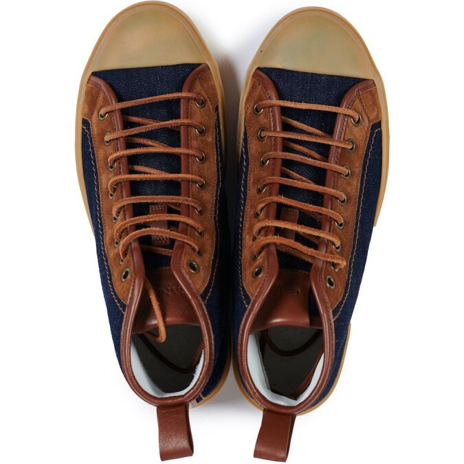 Кеды из джинсовой ткани индиго и замши от CANALI