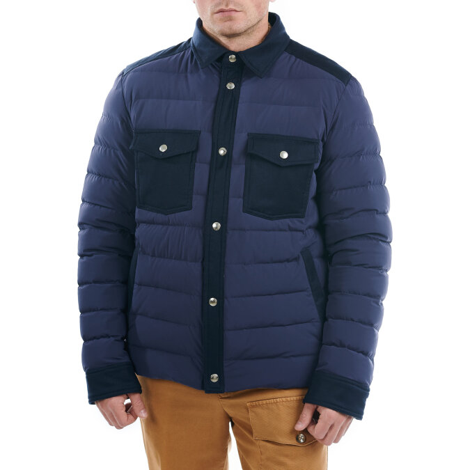Укороченная легкая куртка рубашка от L.B.M.1911 выполнена из водоотталкивающей технологичной ткани со вставками из шерсти. Наполнитель пух/перо.