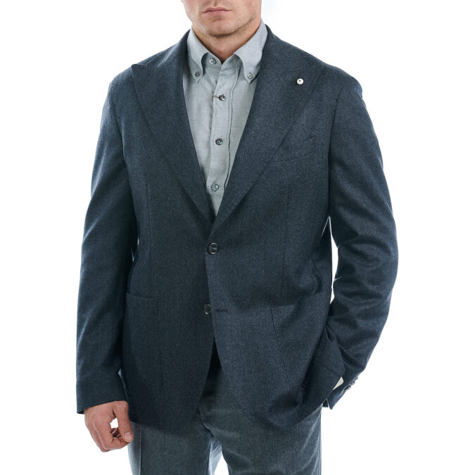 Мягкий пиджак без подклада из шерстяной фланелевой ткани от L.B.M.1911 с неаполитанским лацканом и накладными карманами.