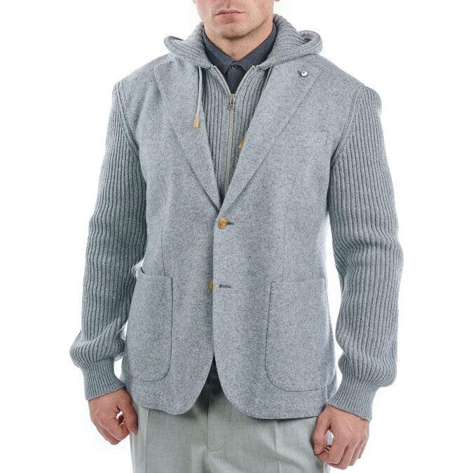 Мягкий пиджак с имитацией вязанного худи от L.B.M.1911 из трикотажной шерстяной и фланелевой тканей .
