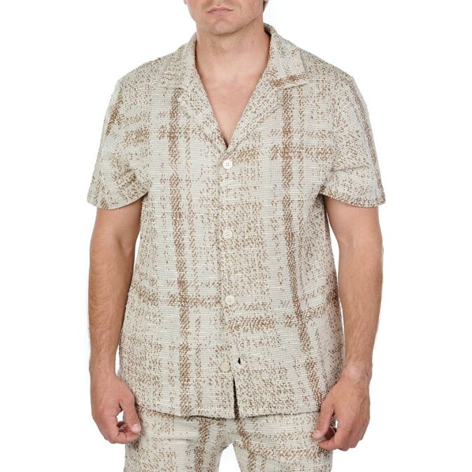 Рубашка из из фактурной ткани букле от NIKBEN. Возможно скомпоновать костюм с шортами из аналогичной ткани